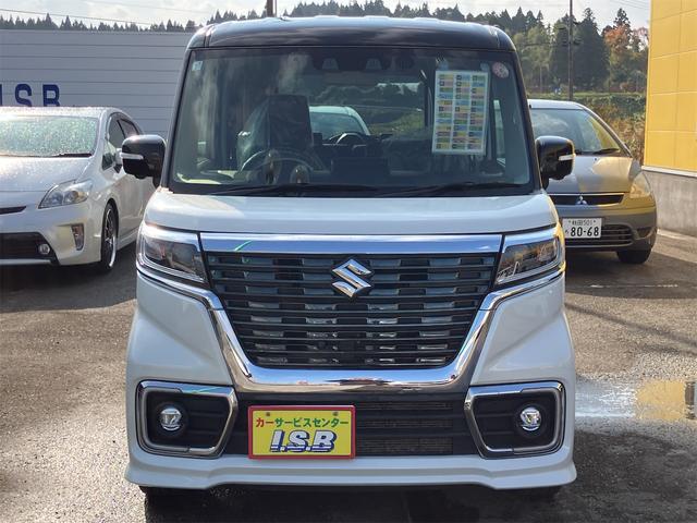 スズキ スペーシアカスタムハイブリッドXSターボ 4WD【修復歴無 禁煙車 2-トンカラールーフ 追従型クルコン】ナビ フルセグTV フリップダウンモニター 全方位モニター 両側電動スライドドア HUD 衝突被害軽減システム LEDヘッドランプ
