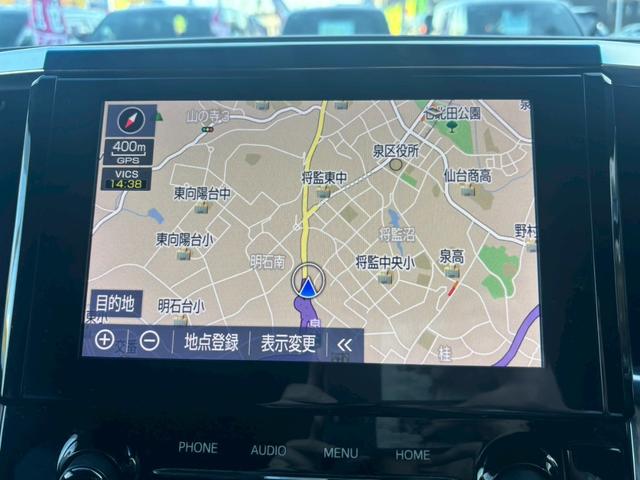 トヨタ アルファードハイブリッドS タイプゴールド【4WD/禁煙/後期型/3眼LED】 【ディスプレイオーディオナビ付/後席フリップダウンモニター】【衝突軽減/クリアランスソナー/追従クルコン】【両側電動ドア/ETC】【CD・DVD/BT接続/バックカメラ】【ハーフレザー/オットマン】