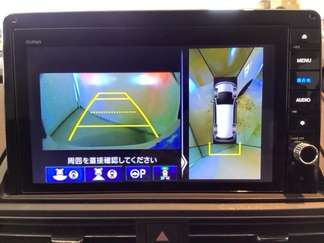 マルチビューカメラシステム搭載車です。お車の周囲を全方位でカバーします。後方・前方・両脇と、コンディションが悪い視界でもカラーモニターに映し出した映像がドライバーをサポートします。