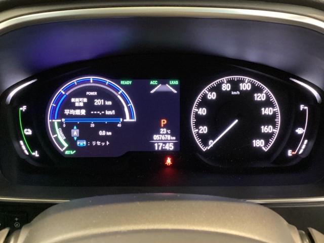 ハイブリット車専用のメーターです。右側の大型スピードメーターに加え、ステアリングスイッチを使って左のサブデスプレイで燃費や動力伝達などの情報が見れるようになっています。