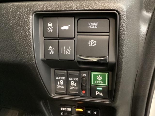 両側電動スライドドアは運転席から操作ができます。Hondaセンシング用のVSA解除とレーンキープアシストシステム等のメインスイッチも装備しています。燃費に役立つECONボタンもここです。