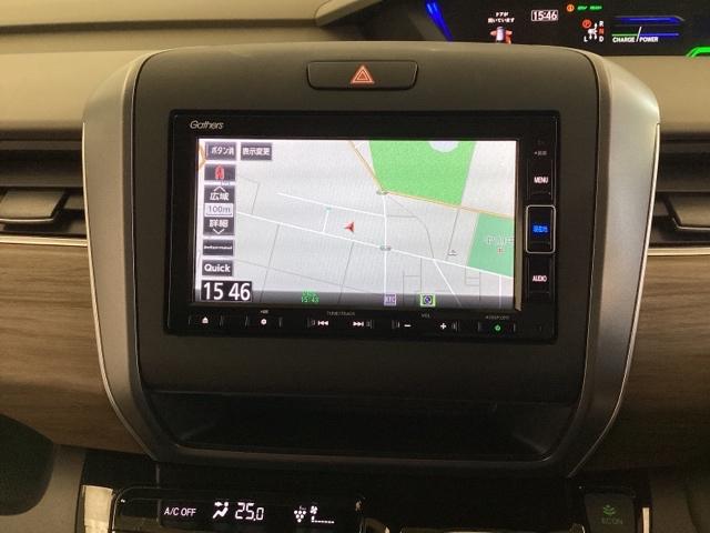 ナビゲーションはフルセグTV、インターナビ対応のGathers純正メモリーナビを搭載しています。Bluetoothオーディオ機能がありますので、スマートフォンなどの音楽も再生できます。