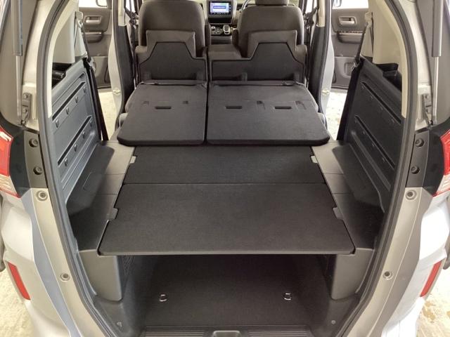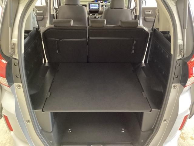 リアシートの座面を持ち上げて、座面があったスペースに背もたれを倒して重ねるダブルフォールディング式を採用しています。リアシートを畳めばフラットで広いラゲッジスペースになります。