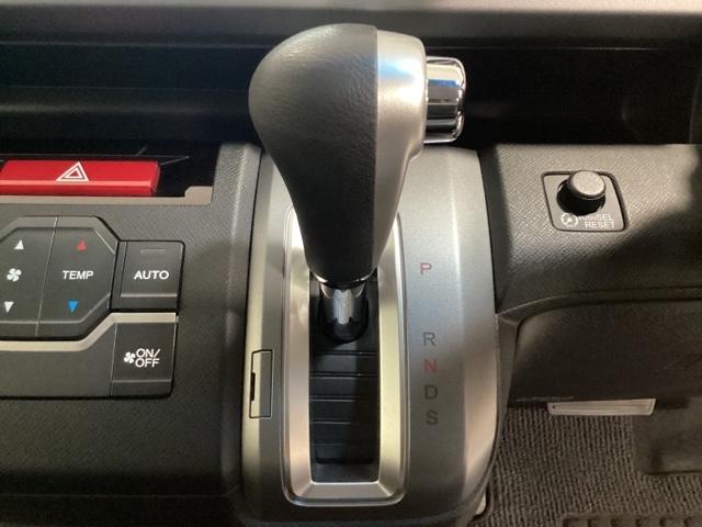 ステアリングの裏側、左右にパドルシフトがついています。右が+、左が-の操作でシフトチェンジを行い、エンジンブレーキなどのマニュアル操作ができます。