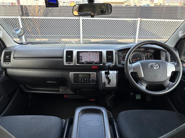 トヨタ ハイエースバンロングスーパーGL 両スラ/リアヒーター/リアクーラー/社外ナビ/バックカメラ/ETC/Bluetooth/純正ドアバイザー/寒冷地仕様/キーレス/純正ホイールキャップ/セパレーターバー