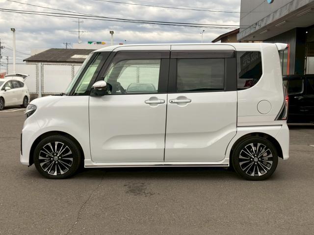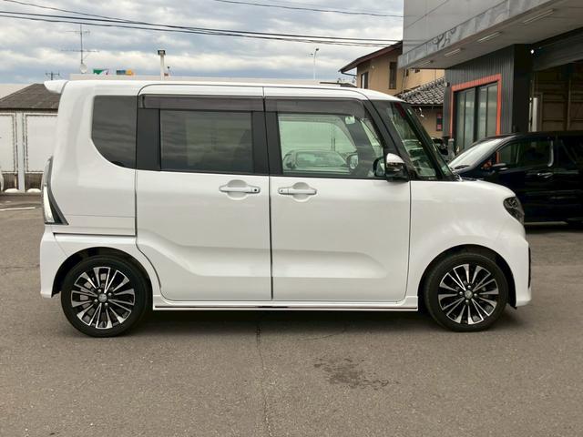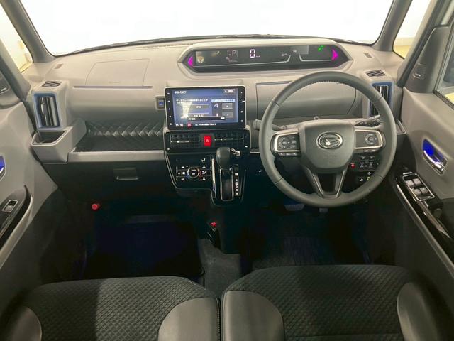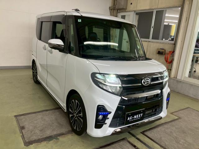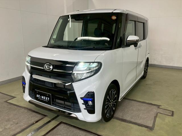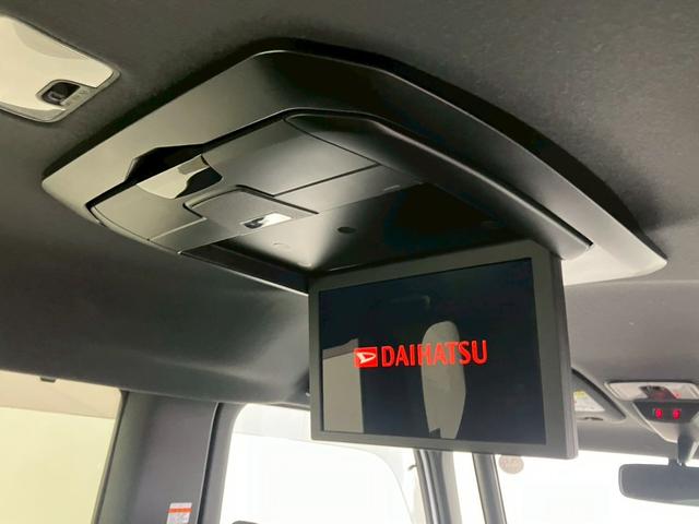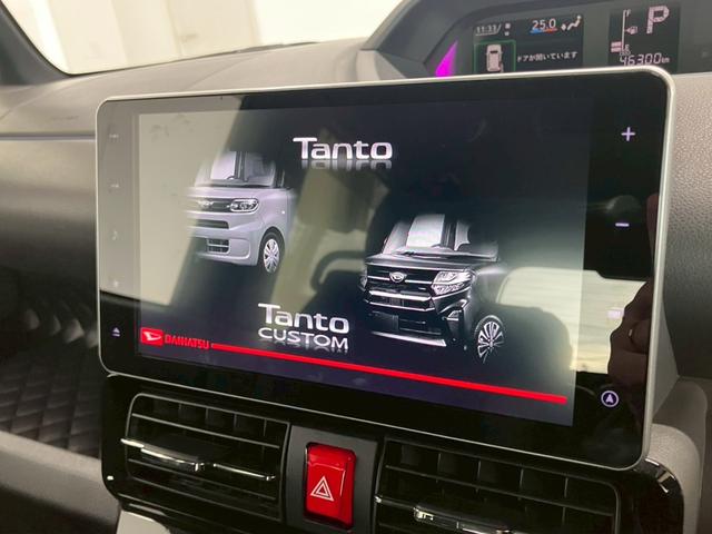 ダイハツ タントカスタムRS 純正8インチナビ 12インチフリップダウンモニター 全周囲カメラ 両側電動スライド LEDライト オートハイビーム レーダークルーズ 衝突被害軽減 レーンキープ クリアランスソナー シートヒーター
