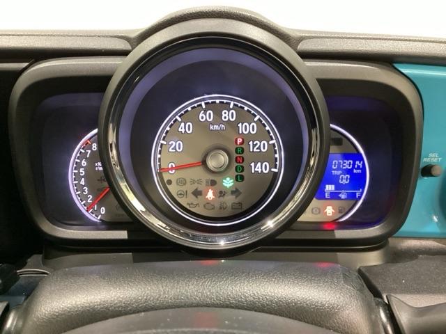 真ん中にスピードメーターを配した、見やすい3眼メーターになっています。右側のインフォメーション画面でオドメーターや燃費などの情報を確認できます。