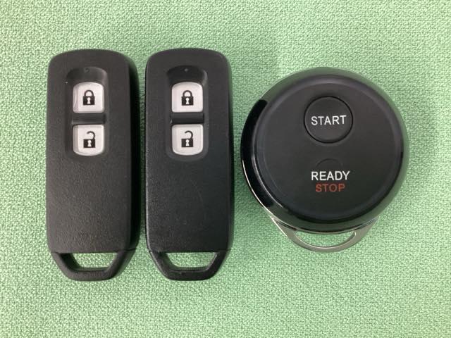スマートキーを装備しています。鍵を差し込むことなくドアロックの開け閉めと、スタートボタン操作でのエンジンスタートができます。加えて、純正リモコンエンジンスターター用の操作キーもついています。