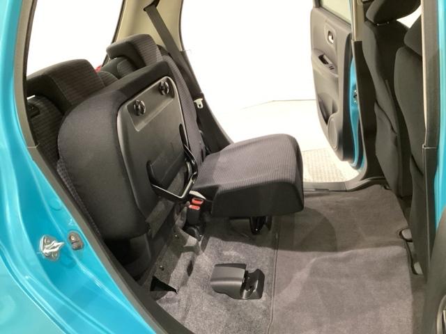 リアシートの背もたれは2段階の角度調節がついています。お好みの位置でゆったりお乗りいただけます。座面を跳ね上げて収納スペースを広くすることも可能です。