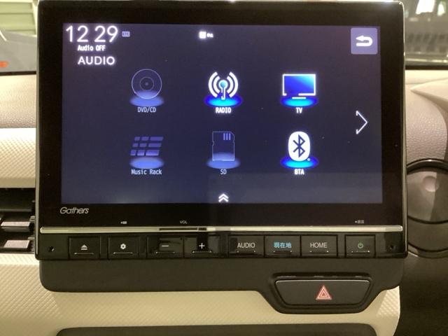 ナビゲーションはフルセグTV、インターナビ対応のGathers純正メモリーナビを搭載しています。Bluetoothオーディオ機能がありますので、スマートフォンなどの音楽も再生できます。