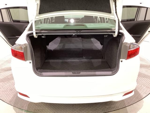 ラゲッジも広く使いやすいトランクは、開口部も広く荷物の積み下ろしもしやすいお車となっております。リアシートの背もたれは6:4の割合で分割して可倒できるので、長いお荷物などを載せることもできます。