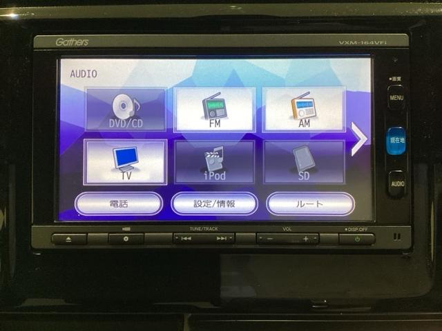 ナビゲーションはフルセグTV対応のGathers純正メモリーナビを搭載しています。Bluetoothオーディオ機能がありますので、スマートフォンなどの音楽も再生できます。