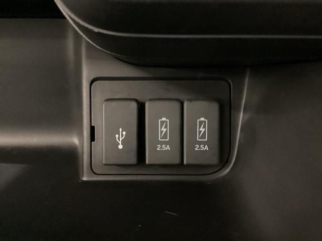エアコン操作パネルの下に、スマートフォンなどの充電可能なUSB端子が2個、音源などの外部入力の可能なUSB端子が1個ついています。移動中に充電もできるので便利です。
