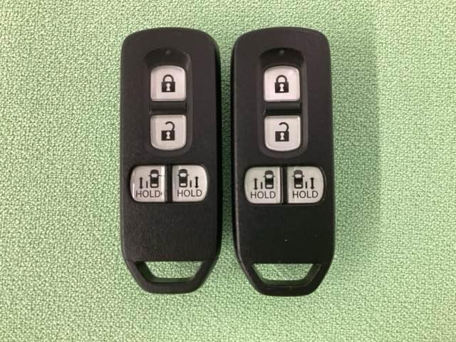 スマートキー付きですからドアロックの開閉およびエンジンスタートが楽々です。電動スライドドアの開け閉めもボタンで操作できます。スペアキーも同じものを用意しております。