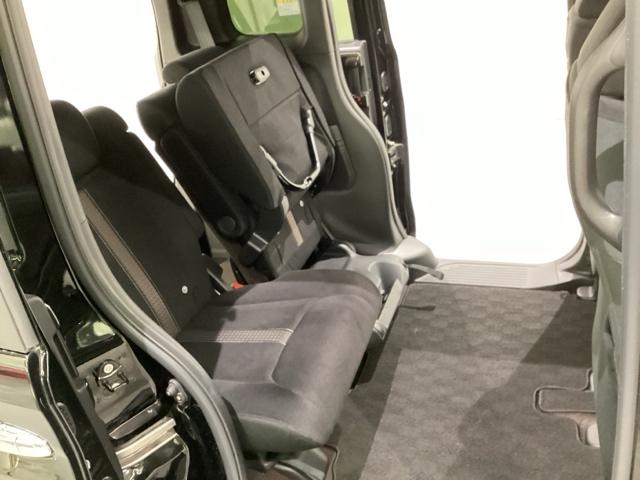 リアシートの背もたれは2段階の角度調節がついています。お好みの位置でゆったりお乗りいただけます。座面を跳ね上げて収納スペースを広くすることも可能です。シートスライドも可能で足元の広さも調整できます。