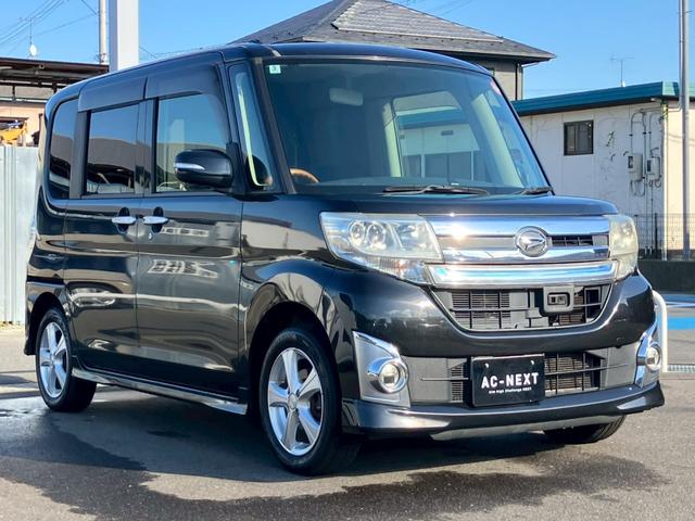 ダイハツ タントカスタムRS SA 純正ナビ フルセグ バックカメラ 両側電動スライドドア momoステアリング ETC 社外14インチホイール オートライト 追突防止 横滑り防止 オートエアコン スマートキー プッシュスタート