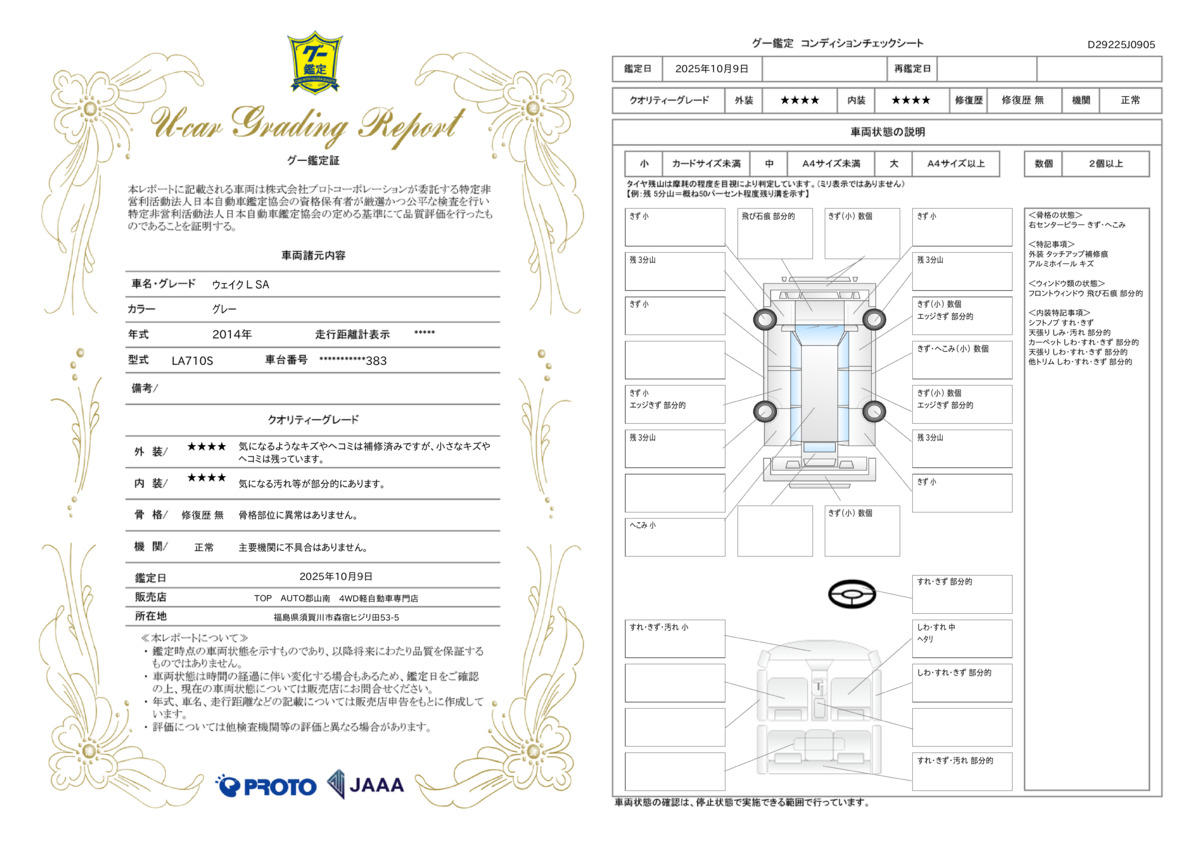 当社は【コンディションノート】を開示致しております!修復歴を【偽って】販売することはありません!