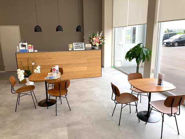 明るく開放的な店内です。奥には、半個室もございますので、人目を気にせずにお車の相談ができます。