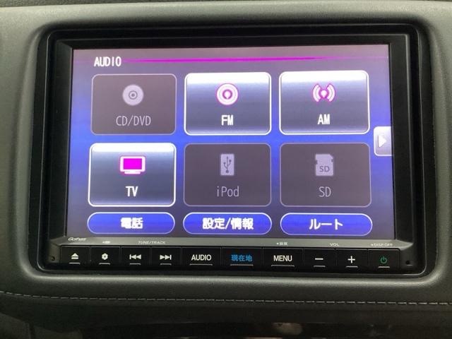 ナビゲーションはフルセグTV、インターナビ対応のGathers純正メモリーナビを搭載しています。Bluetoothオーディオ機能がありますので、スマートフォンなどの音楽も再生できます。