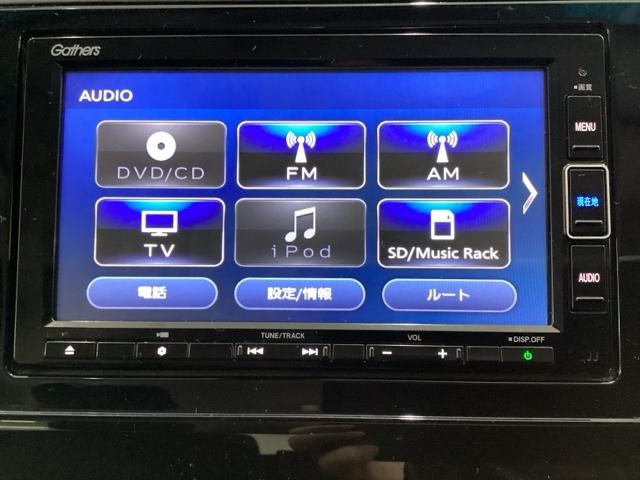 ナビゲーションはフルセグTV、インターナビ対応のGathers純正メモリーナビを搭載しています。Bluetoothオーディオ機能がありますので、スマートフォンなどの音楽も再生できます。