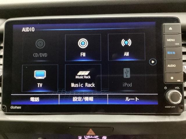 ナビゲーションはフルセグTV、インターナビ対応のGathers純正メモリーナビを搭載しています。Bluetoothオーディオ機能がありますので、スマートフォンなどの音楽も再生できます。