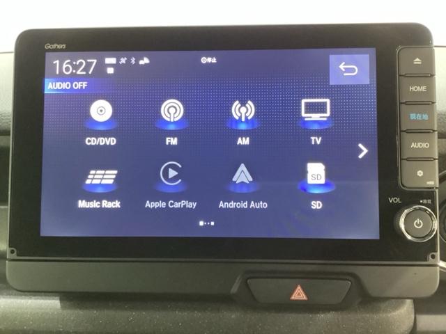ナビゲーションはフルセグTV、インターナビ対応のGathers純正メモリーナビを搭載しています。Bluetoothオーディオ機能がありますので、スマートフォンなどの音楽も再生できます。