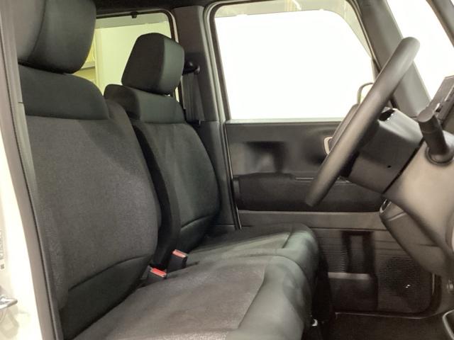広い足元に肘掛けもついたゆったり座れるシートです。運転席と助手席の間が空いているため、助手席側への移動がスムーズです。交通量の多い道でも、助手席側から乗り降りができます。