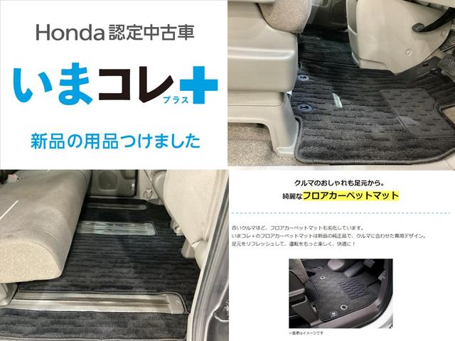 『いまコレ+新品・フロアカーペットマット付』。 Hondaが責任を持って整備した認定中古車に、もっと便利に、もっと多様に、新品の用品をつけた特別な中古車です。