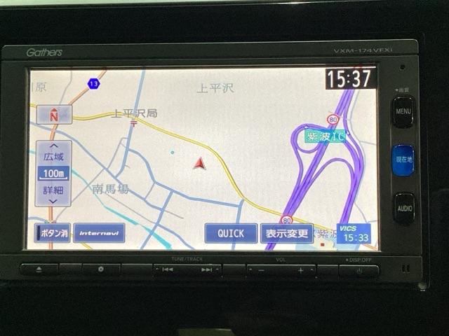 ナビゲーションはフルセグTV対応のGathers純正メモリーナビを搭載しています。Bluetoothオーディオ機能がありますので、スマートフォンなどの音楽も再生できます。