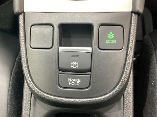 セレクトレバーの下に電子制御パーキングブレーキがあります。スイッチひとつで、停車した地点の傾斜などをシステムが検知・判断してブレーキ力を自動的に最適制御し、しっかり停車できるパーキングシステムです。