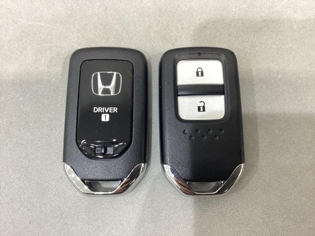 スマートキーを装備しています。鍵を差し込むことなくドアロックの開け閉めと、スタートボタン操作でのエンジンスタートができます。スペアキーも同じものを用意しております。
