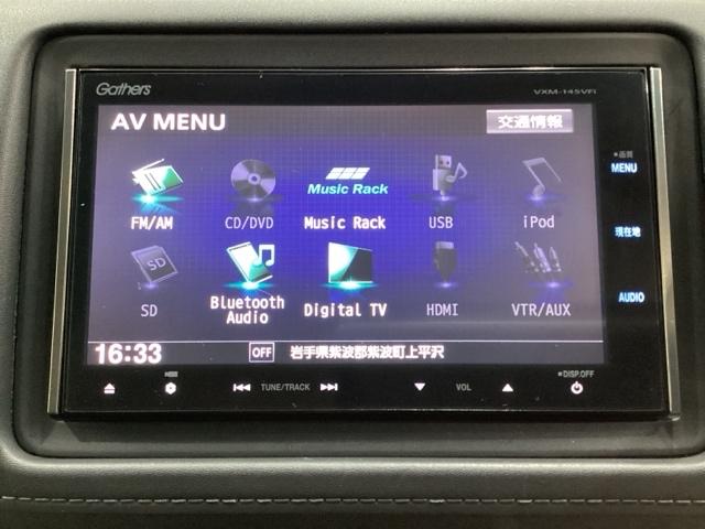 ナビゲーションはフルセグTV対応のGathers純正メモリーナビを搭載しています。Bluetoothオーディオ機能がありますので、スマートフォンなどの音楽も再生できます。