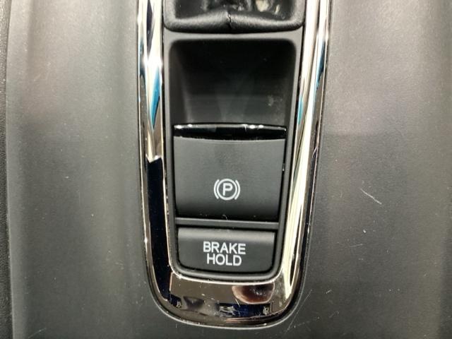 セレクトレバーの下に電子制御パーキングブレーキがあります。スイッチひとつで、停車した地点の傾斜などをシステムが検知・判断してブレーキ力を自動的に最適制御し、しっかり停車できるパーキングシステムです。