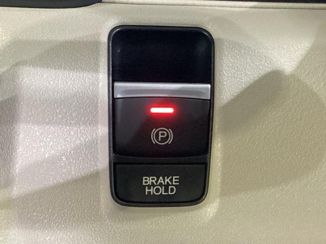 セレクトレバーの右に電子制御パーキングブレーキがあります。スイッチひとつで、停車した地点の傾斜などをシステムが検知・判断してブレーキ力を自動的に最適制御し、しっかり停車できるパーキングシステムです。