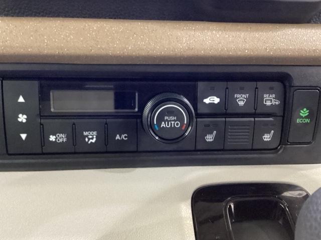 オートエアコンがついてますので、簡単操作で快適に過ごせます。リア熱線のスイッチの中にサイドミラーヒーターも入っています。パネル内のシートヒータースイッチは前席の左右別々に2段階で温度設定ができます。