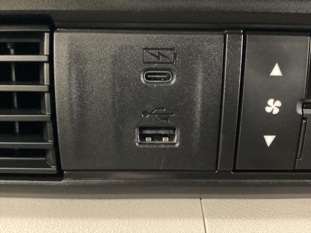 エアコン操作パネルの左側に、スマートフォンなどの充電可能なUSB端子と、音源などの外部入力の可能なUSB端子がついています。移動中に充電もできるので便利です。