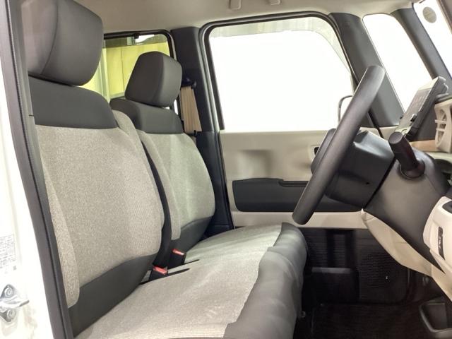広い足元に肘掛けもついたゆったり座れるシートです。運転席と助手席の間が空いているため、助手席側への移動がスムーズです。交通量の多い道でも、助手席側から乗り降りができます。