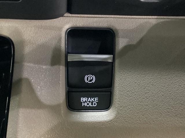 セレクトレバーの右に電子制御パーキングブレーキがあります。スイッチひとつで、停車した地点の傾斜などをシステムが検知・判断してブレーキ力を自動的に最適制御し、しっかり停車できるパーキングシステムです。
