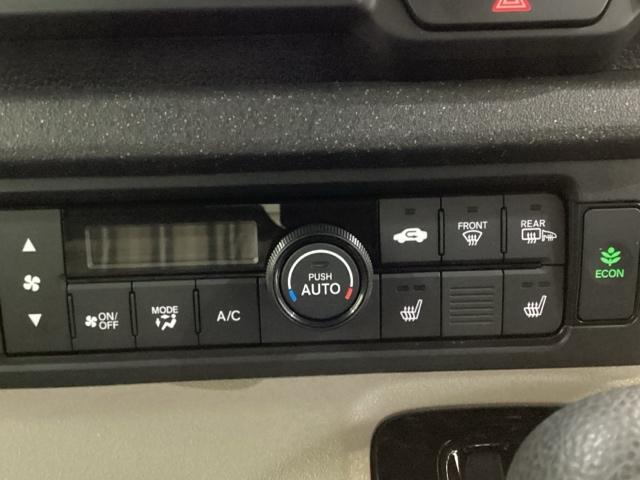 オートエアコンがついてますので、簡単操作で快適に過ごせます。リア熱線のスイッチの中にサイドミラーヒーターも入っています。パネル内のシートヒータースイッチは前席の左右別々に2段階で温度設定ができます。