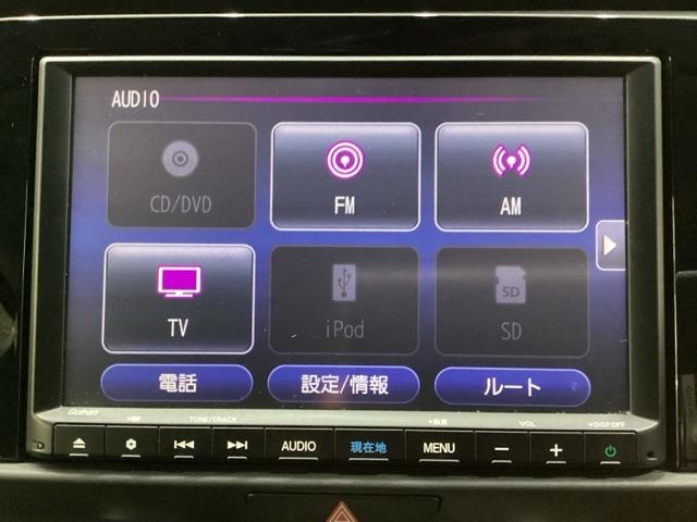 ナビゲーションはフルセグTV、インターナビ対応のGathers純正メモリーナビを搭載しています。Bluetoothオーディオ機能がありますので、スマートフォンなどの音楽も再生できます。