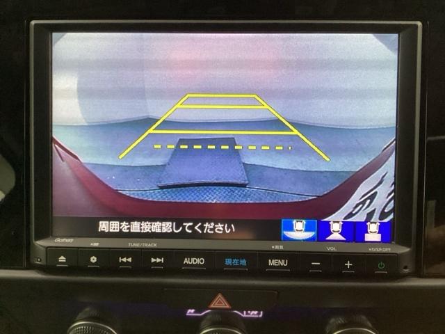 バックでの車庫入れも安心です! リアカメラが付いているバックモニター付のナビを装備しております。操作線もついており距離感も画面から確認できます。