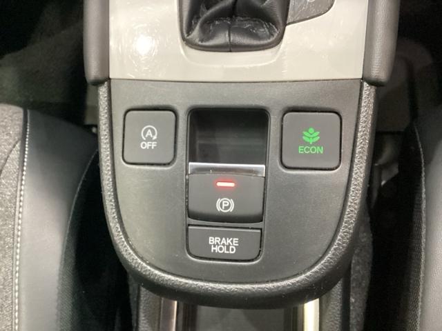 セレクトレバーの下に電子制御パーキングブレーキがあります。スイッチひとつで、停車した地点の傾斜などをシステムが検知・判断してブレーキ力を自動的に最適制御し、しっかり停車できるパーキングシステムです。