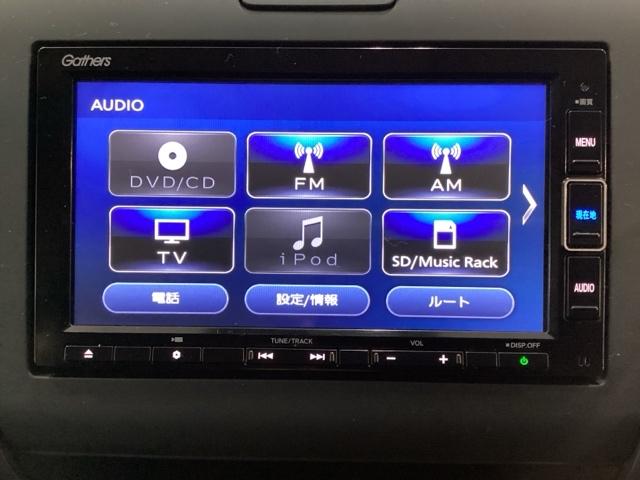ナビゲーションはフルセグTV、インターナビ対応のGathers純正メモリーナビを搭載しています。Bluetoothオーディオ機能がありますので、スマートフォンなどの音楽も再生できます。