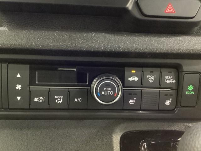 オートエアコンがついてますので、簡単操作で快適に過ごせます。リア熱線のスイッチの中にサイドミラーヒーターも入っています。パネル内のシートヒータースイッチは前席の左右別々に2段階で温度設定ができます。