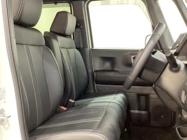 広い足元に肘掛けもついたゆったり座れるシートです。運転席と助手席の間が空いているため、助手席側への移動がスムーズです。交通量の多い道でも、助手席側から乗り降りができます。