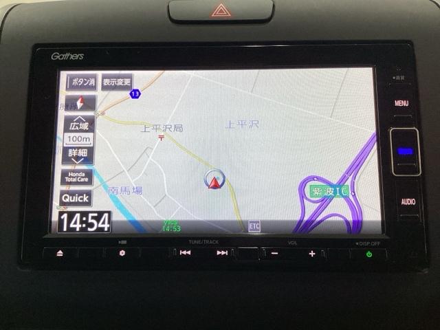 ナビゲーションはフルセグTV、インターナビ対応のGathers純正メモリーナビを搭載しています。Bluetoothオーディオ機能がありますので、スマートフォンなどの音楽も再生できます。
