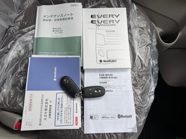 車両説明書・その他オプション品の説明書が揃っております。またスペアキーも揃っております。 ご納車時にはスズキ自動車のメーカー保証書も付属しますので、もしもの際も安心です!!