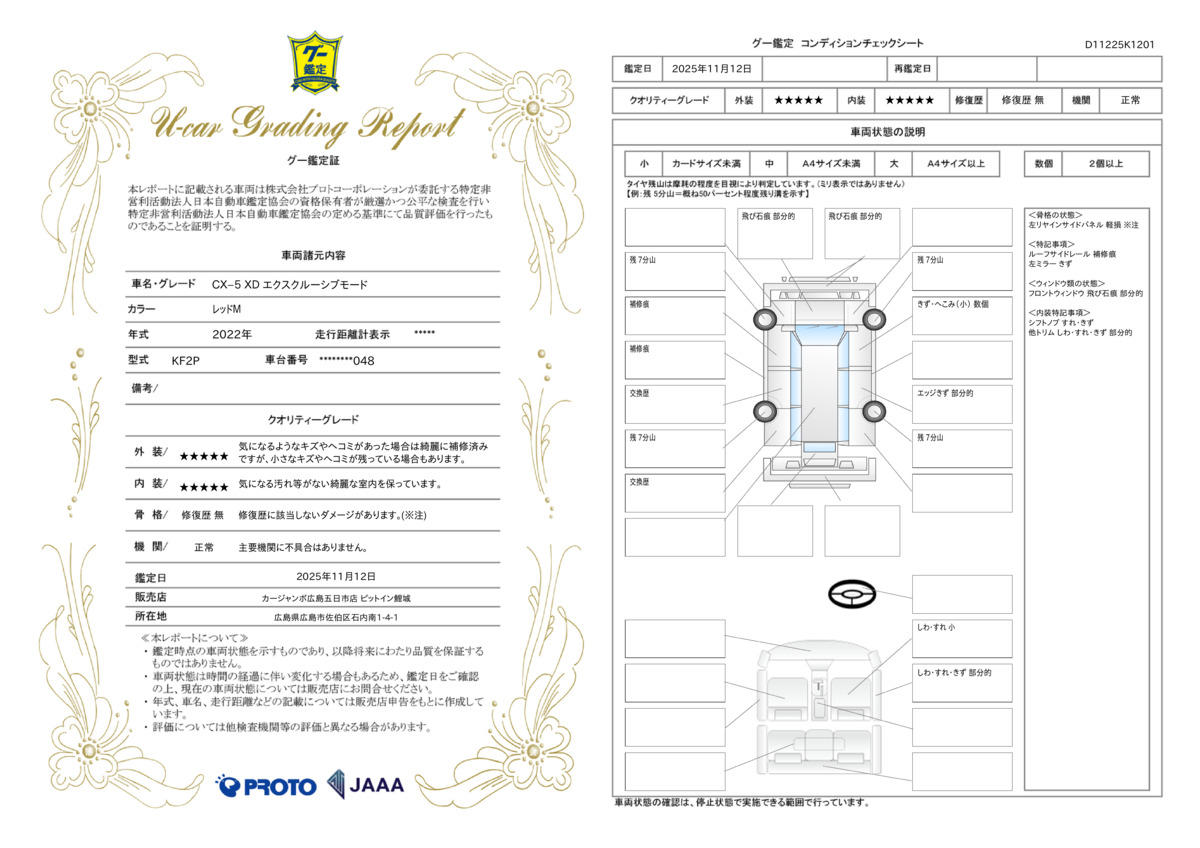 | 走行距離 | 1.5万km | 修復歴 | なし |