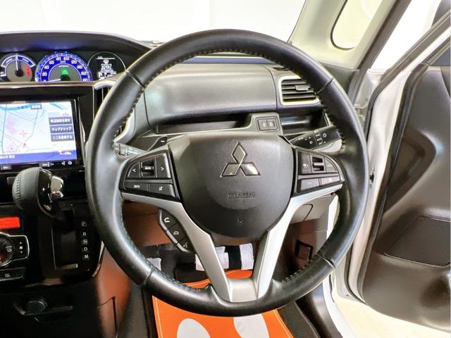 本革巻きステアリングを採用し、手になじむ質感と上質な握り心地が魅力です。ステアリングスイッチでオーディオ操作も快適。アダプティブクルーズコントロール搭載で高速走行時の負担を軽減します。