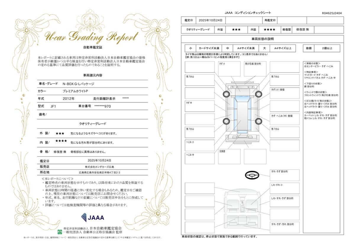| 走行距離 | 7.3万km | 修復歴 | なし |